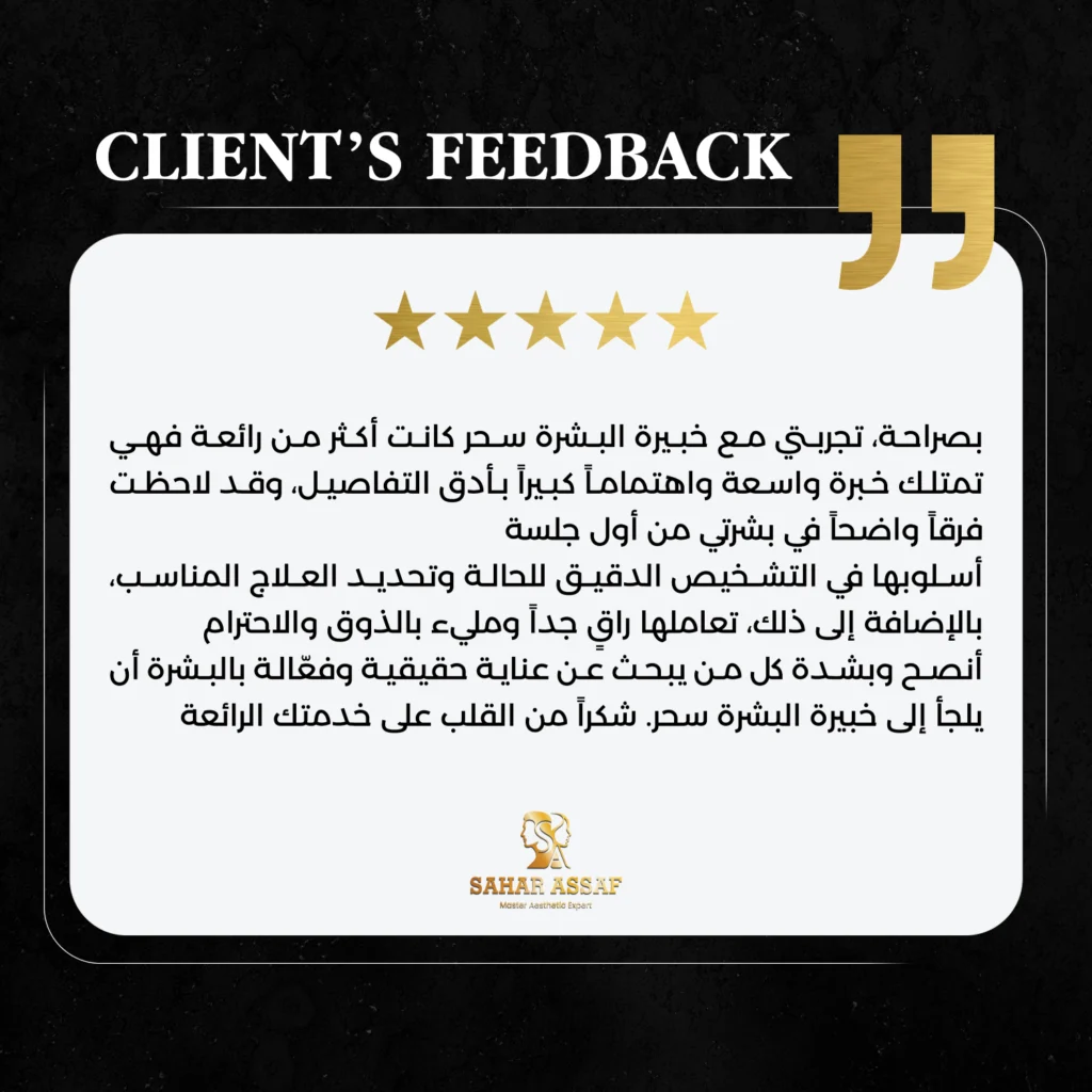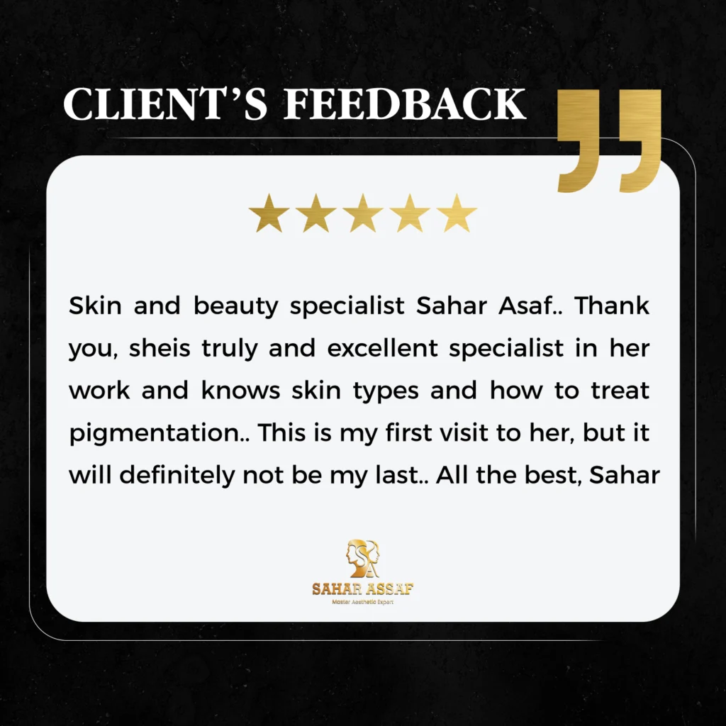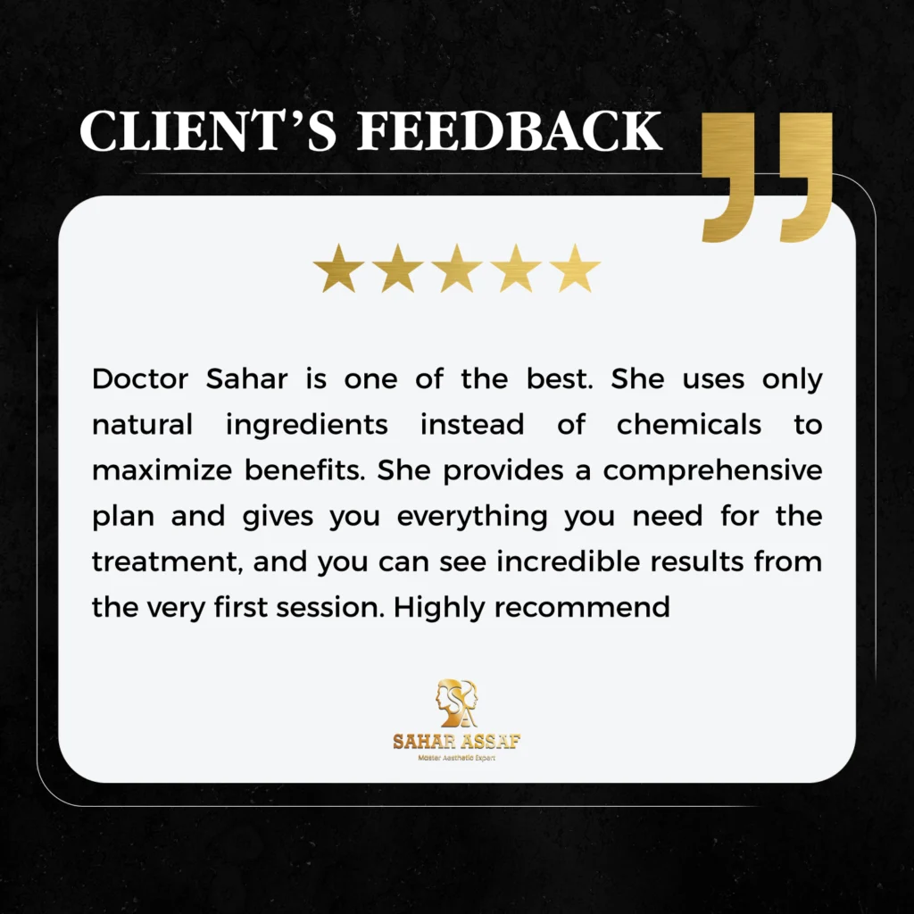With Sahar Assaf, excellence isn’t just a standard—it’s a promise. Every treatment is designed to elevate your confidence, backed by cutting-edge technology and a deep understanding of beauty. With a meticulous approach to each service, Sahar ensures that every client not only looks their best but feels empowered in their own skin.