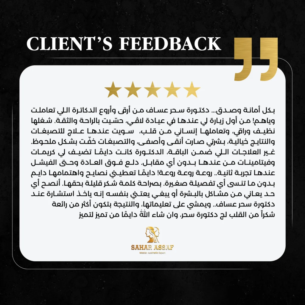 In a city that celebrates luxury and excellence, Sahar Assaf stands as a true icon of beauty. With a legacy shaped by international expertise from Lebanon and France, and years of clinical leadership as a former partner in a prestigious clinic in Iraq, Sahar now brings her visionary talent to the heart of Dubai. Her clinic offers elite services for hair, skin, and body — powered by innovation, intelligence, and individual care.